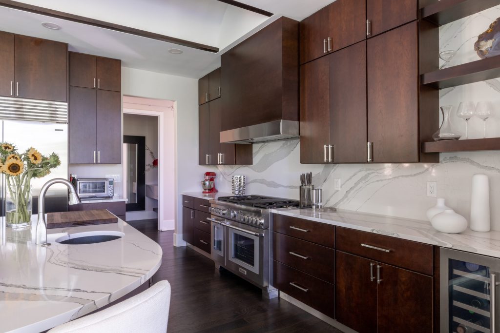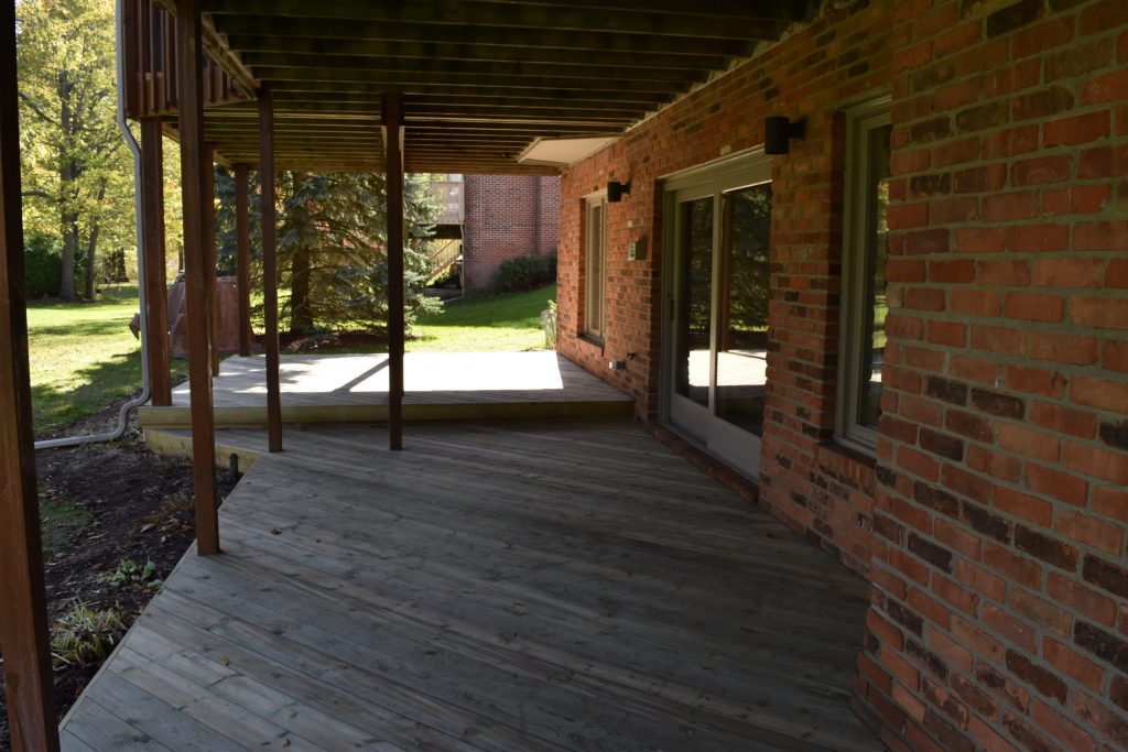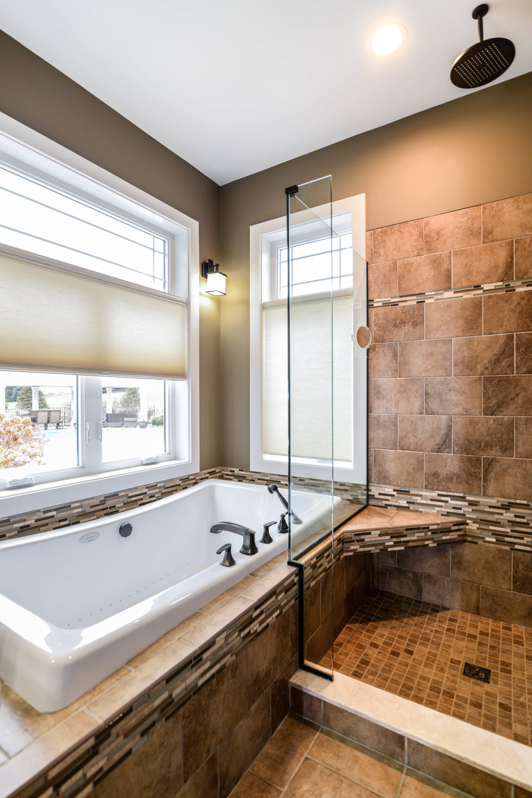 This outdoor oasis makes for a fun backyard. Our craftsmen built a cabana, pergola and an exterior access bathroom to make this a great space for enjoyment and entertaining. The cabana has electrical as well as a wall mounted TV.